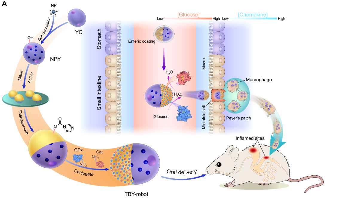 TBY-robot像“纳米快递员”,派尔氏结类似于“中转站”,通过切换不同的交通工具,将货物精准的递送到目的地。酵母微纳生物机器人的成功开发为胃肠道炎症和其他炎症相关疾病的治疗提供了全新的技术手段。